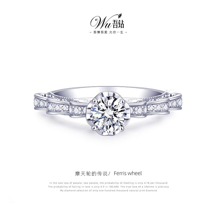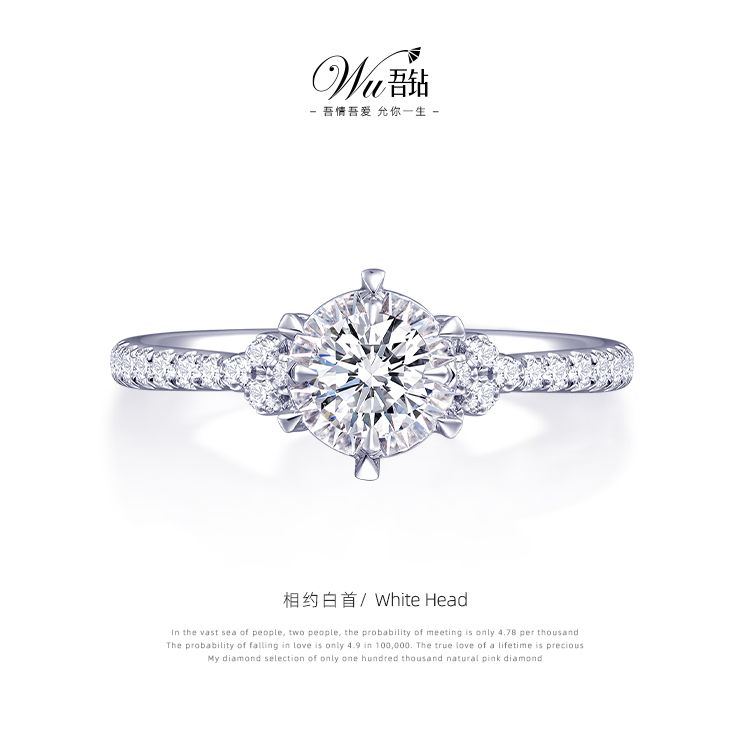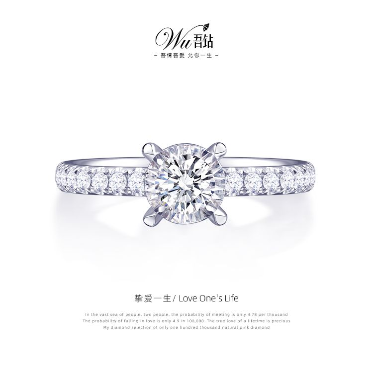 经典四爪镶嵌自然多角度折现光芒 最大程度呈现钻石火彩