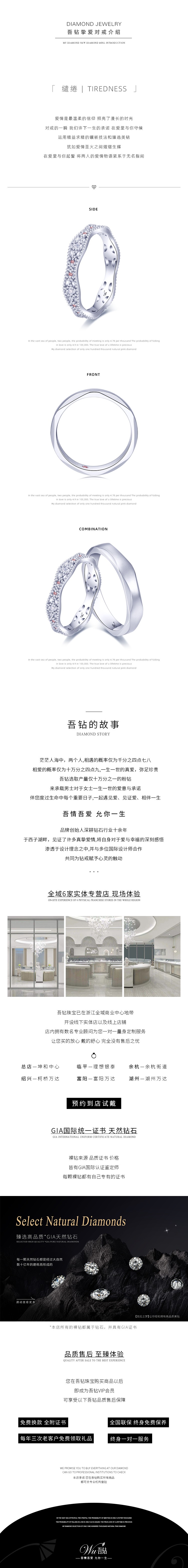 女戒错落排列的镶嵌方式宛如一首协奏曲,奏响幸福韵律,男戒内嵌钻石,低调含蓄,作为呼应,宛如副歌,协奏幸福韵律。男女戒采用同频率多边形波纹设计,寓意因爱同步,心有灵犀。