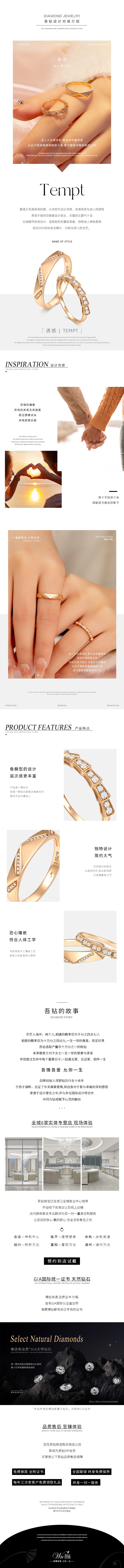 霸道又充满诱惑的爱,以灵蛇为设计灵感,充满诱惑与迷人的感性,男戒不规则切割面设计蛇头,含蓄却又霸气十足,女戒鳞节蛇身设计,呈现蛇形的蔓延弯曲,独特迷人神秘莫测,钻石闪闪宛如发光鳞片,闪烁出诱人的光芒。