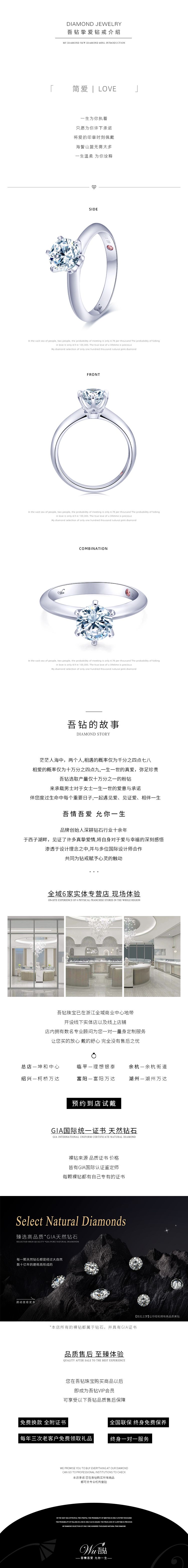 钻戒整体外观设计采用的是瑞典简约风格,讲钻戒的设计元素简化,但对材质质感要求很高,空间设计非常含蓄,达到了钻戒以钻戒以简剩繁的效果